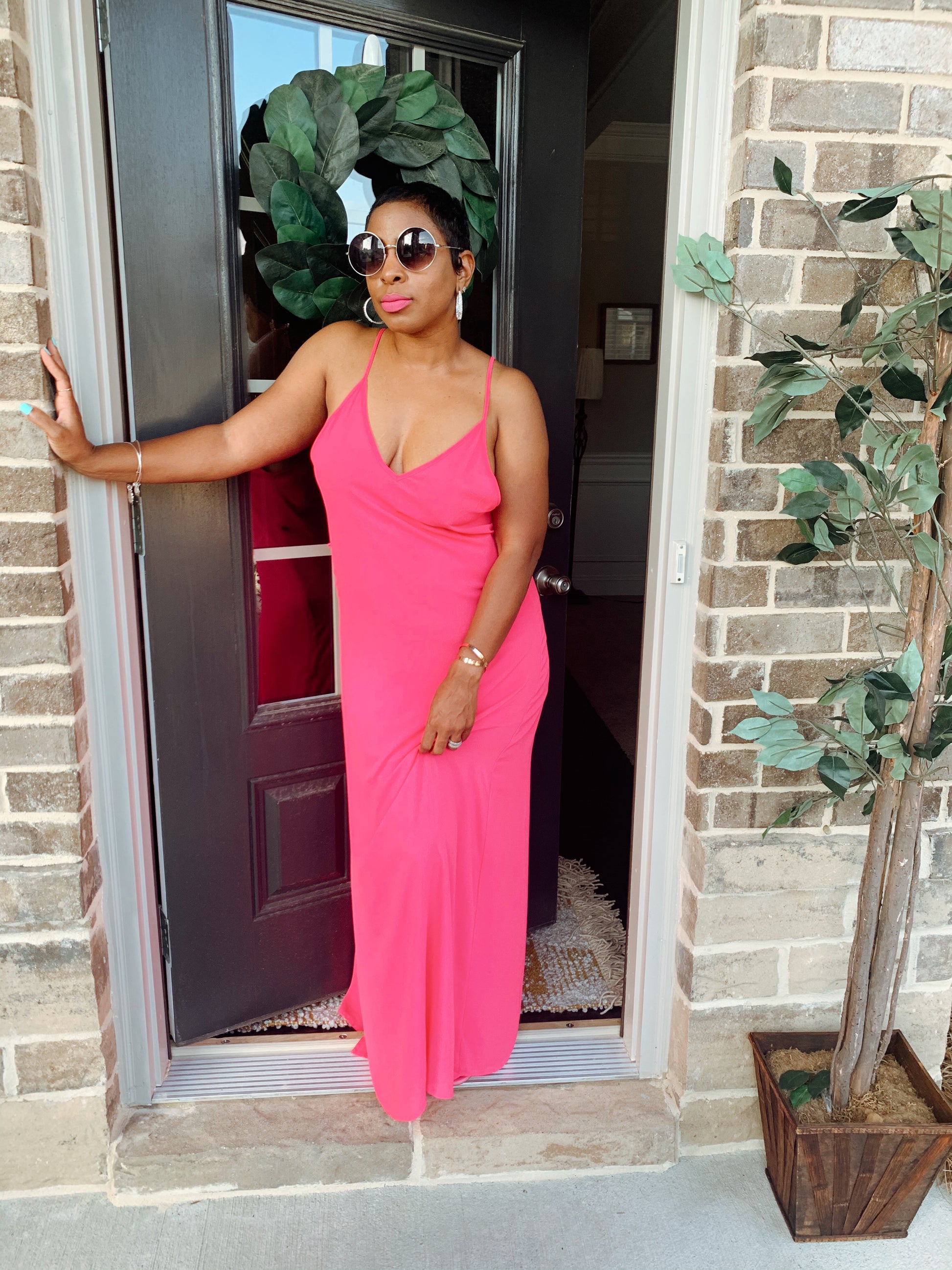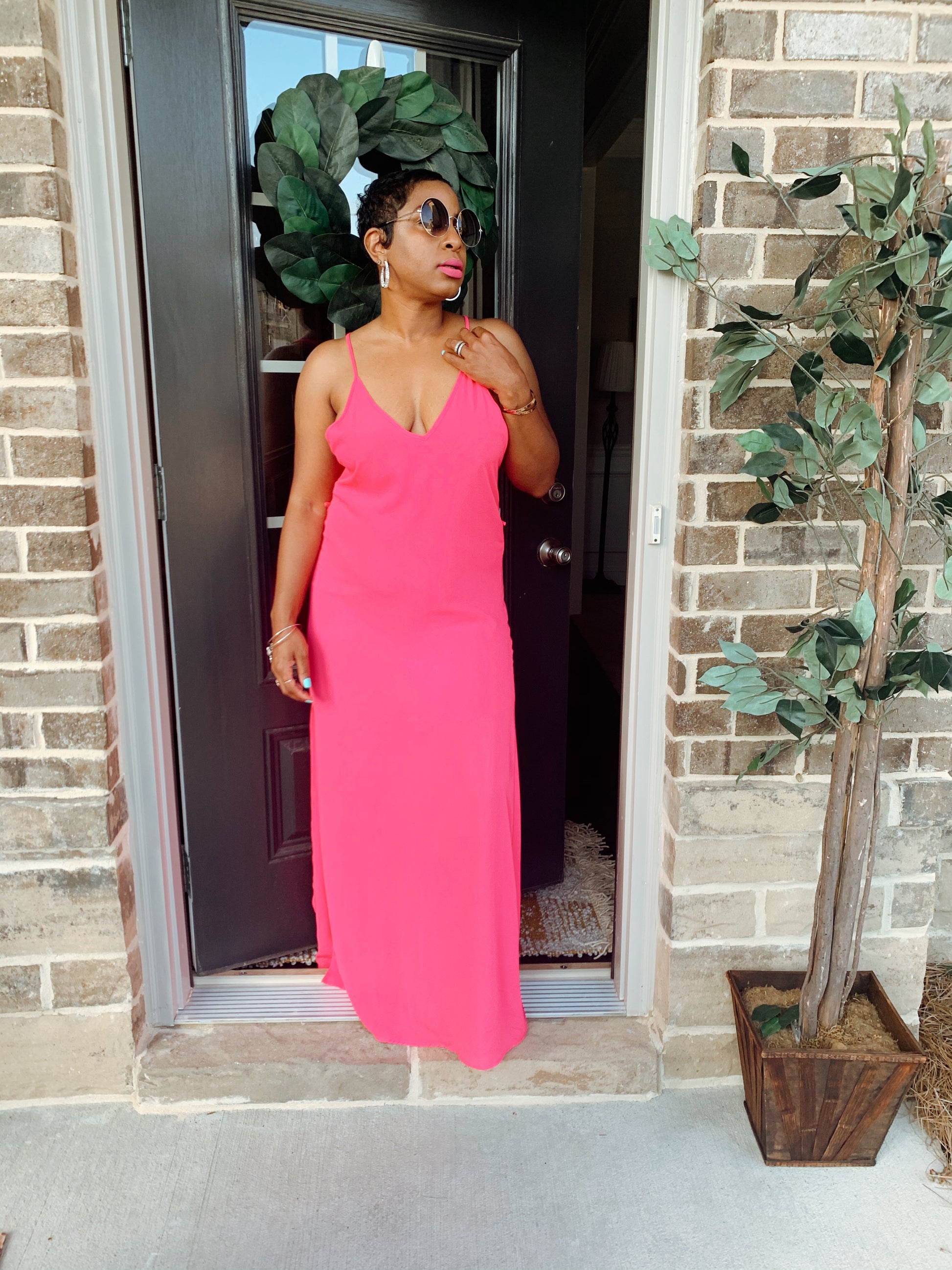 -Neon Pink Maxi Dress w/ Lining