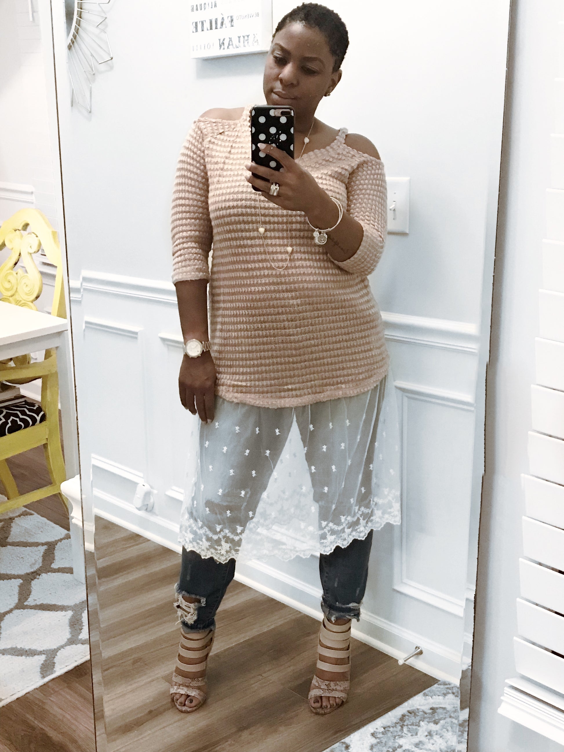Sheer Cold Shoulder Tunic: Sizes S-L